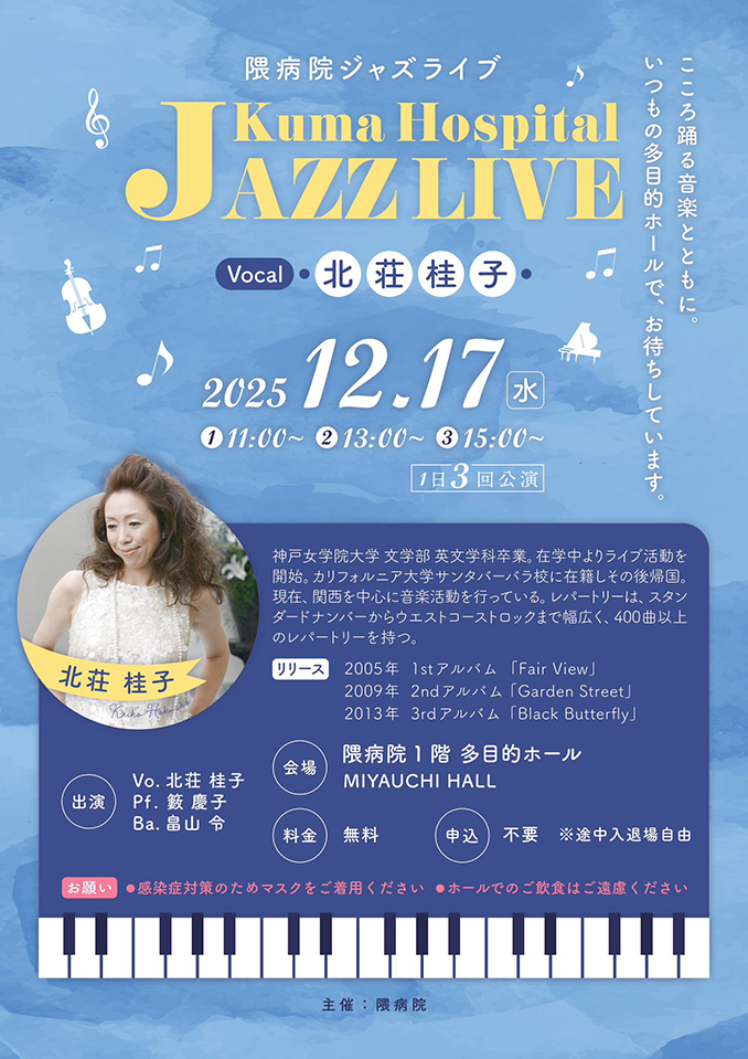 神戸女学院大学 文学部 英文学科卒業。 在学中よりライブ活動、ホテル、イベント等への出演を開始。 シニアカレッジでの特別講義としての演奏会や、寺院本堂での演奏会にも出演。 レパートリーはスタンダードナンバーからウェストコーストロックまで、 400曲程をカバーしている。 カリフォルニア大学サンタバーバラ校に数年間在籍、充電期間を過ごし帰国。 その後も音楽活動と 旅に夢中の日々を送っている。 2005年5月、ファーストアルバム“Fair View”リリース。 2009年5月、セカンドアルバム“Garden Street”リリース。 華道真生未生流師範 神戸市在住。